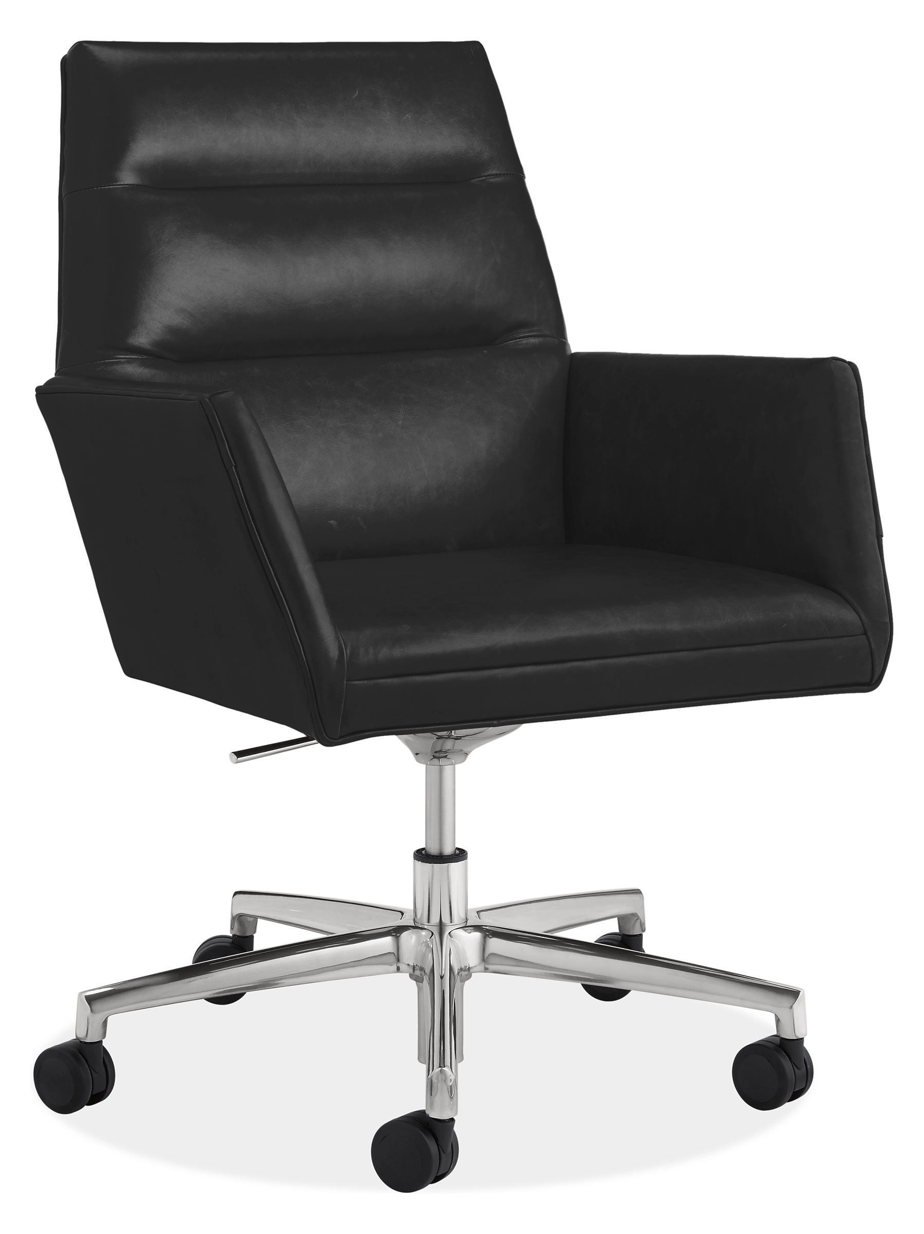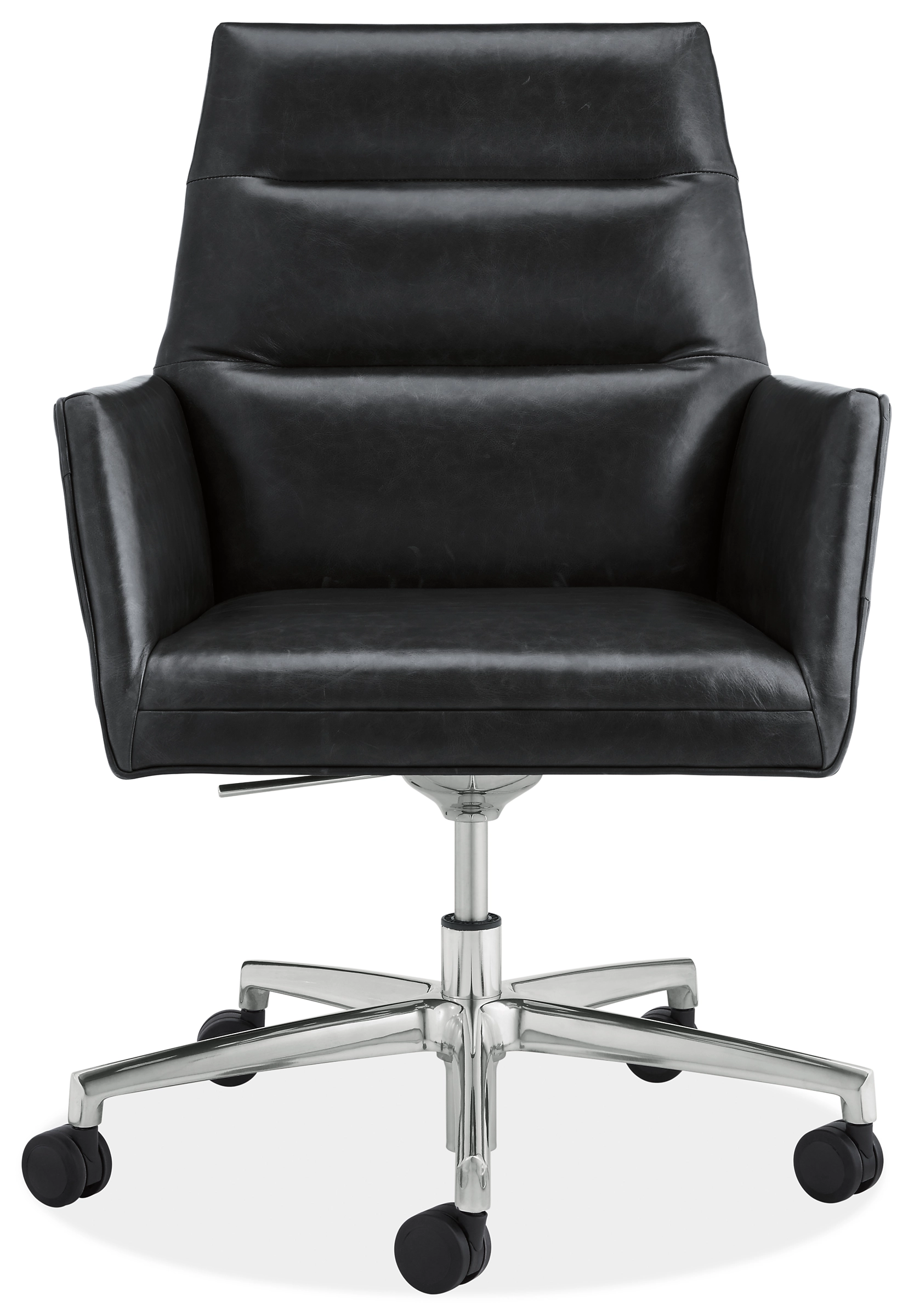 The Tenley leather office chair combines clean, modern style with the comfort you need to work all day long. You’ll appreciate Tenley’s angular details and a beautifully stitched high back that offer classic appeal and continuous support. This modern leather chair looks equally stylish behind an executive desk or an in-home office, while smooth-moving casters ensure you can move around your workspace with ease.