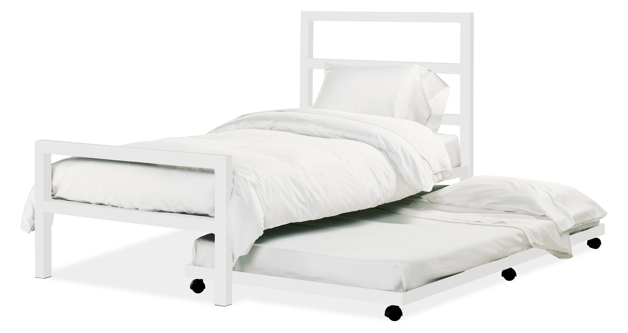 - Includes: complete trundle bed frame and mattress support system; mattress not included