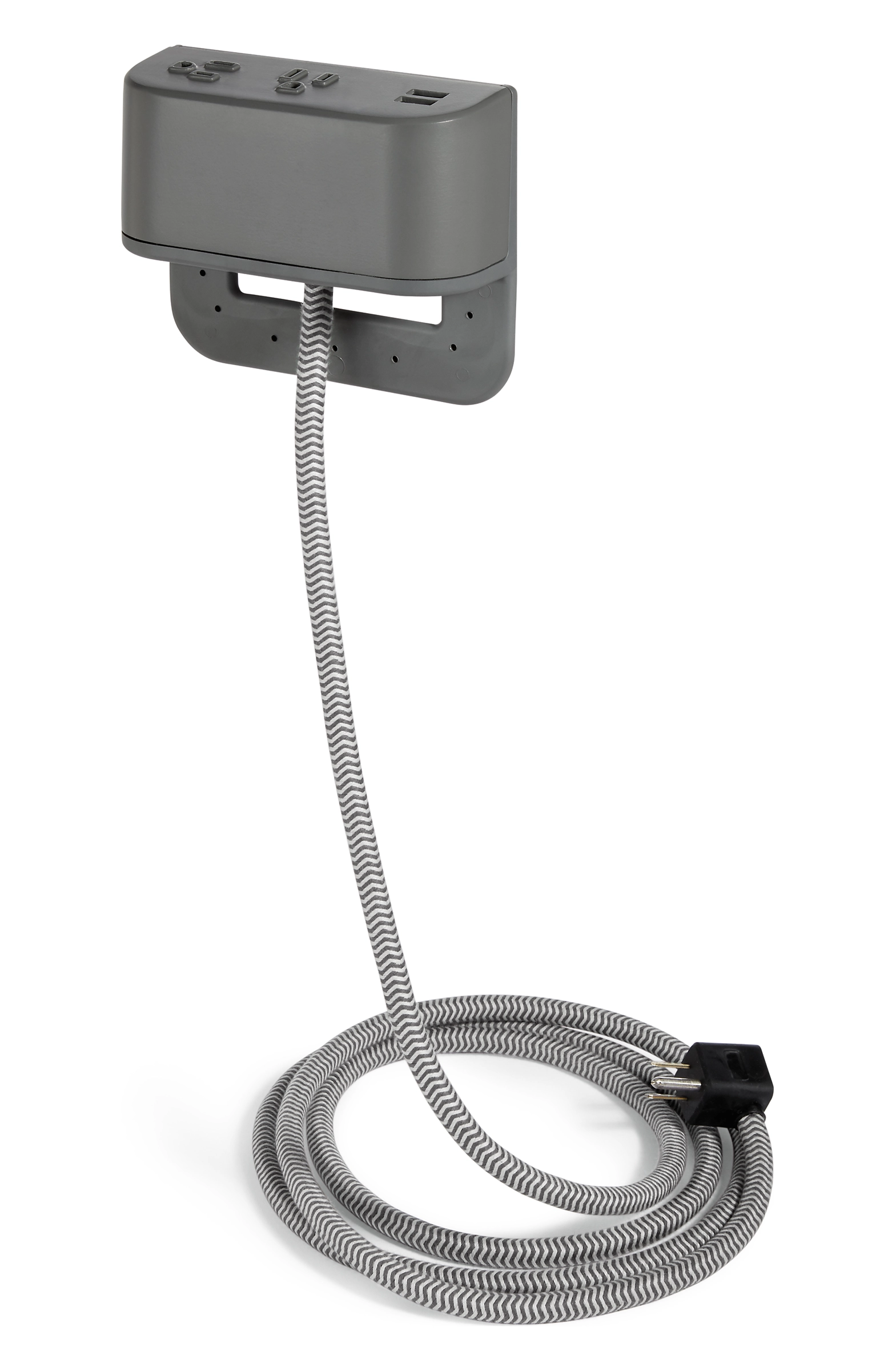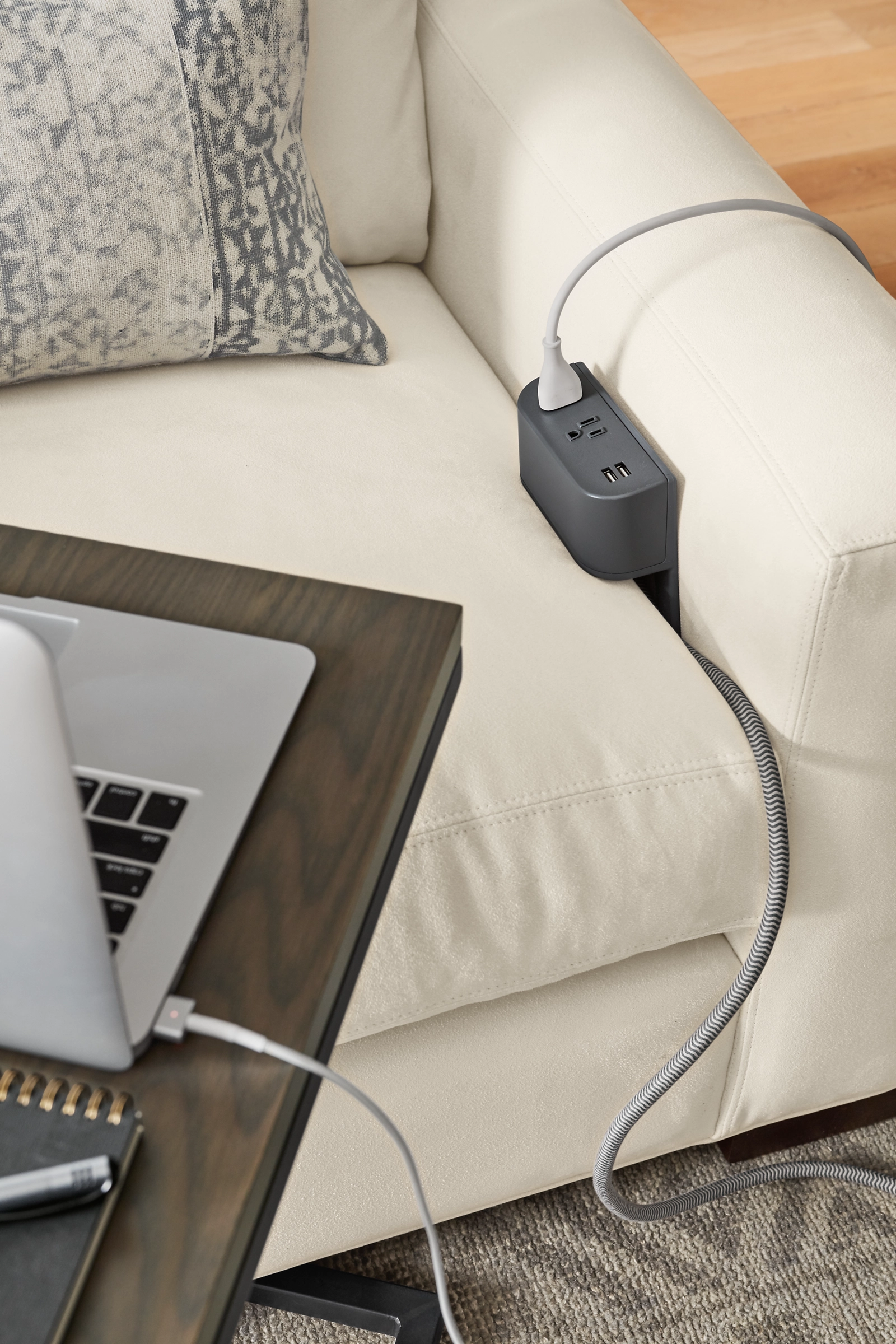 The Tully® outlet tucks right into comfortable spaces, like a sofa or chair. Made in Michigan, this power outlet features dual USB ports, two outlets and a 10-foot braided cord. Choose from a 2-inch tail for a compact fit between sofa cushions, or a 9-inch tail that can easily bend to tuck underneath cushions.