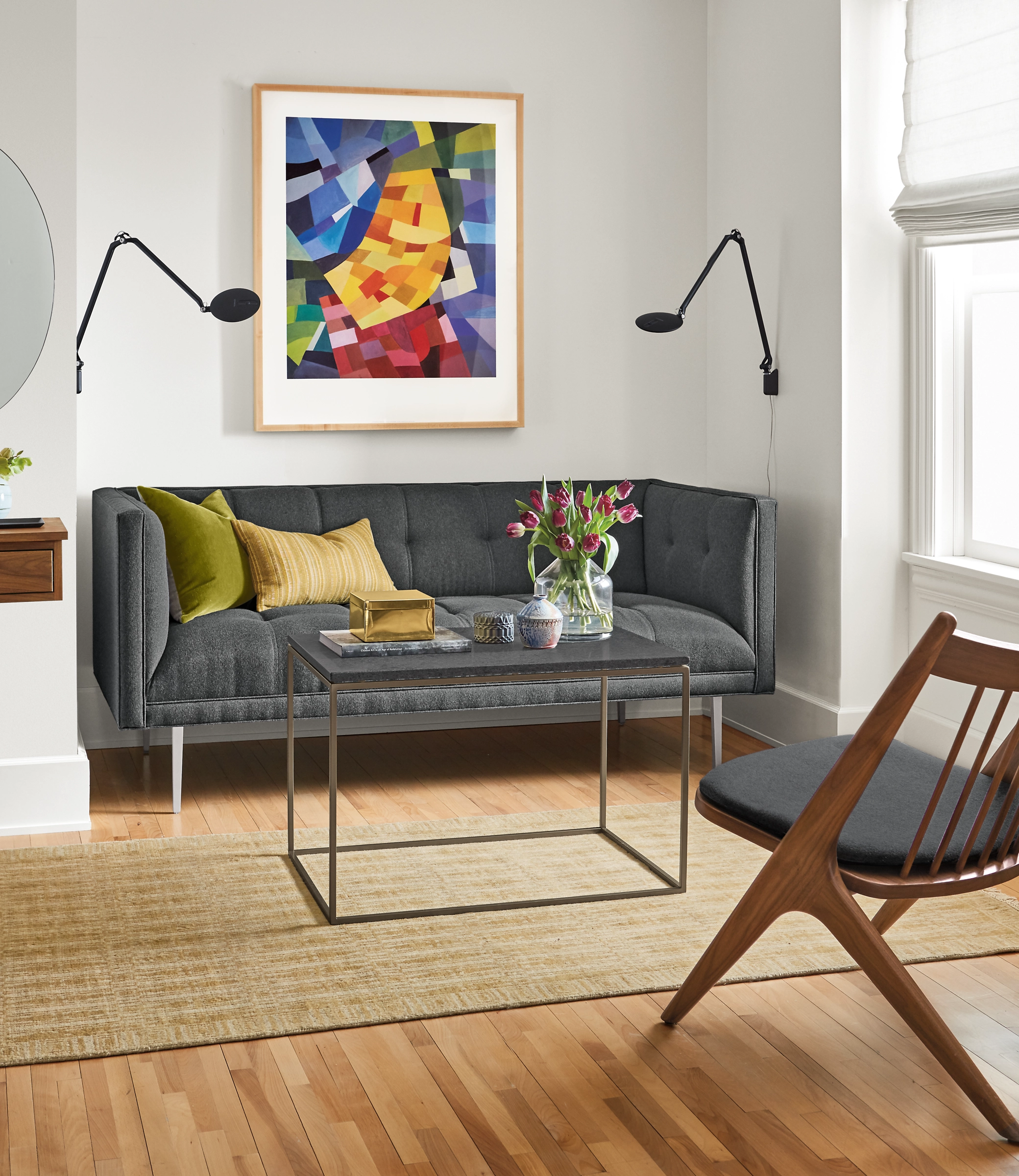The strength of hand-welded steel combined with clean, fine lines gives the Tyne end table a delicate profile, despite its solid construction. Please note: overall height may vary slightly depending on the top material you select.
