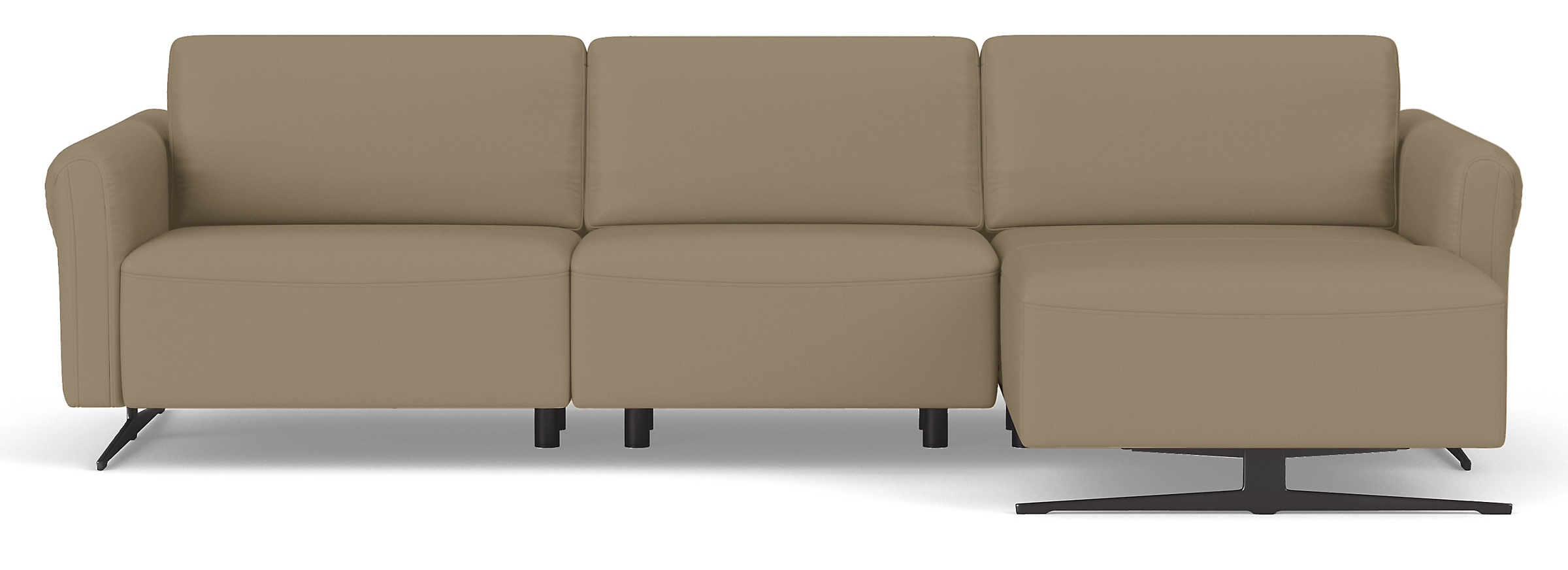 - Features: Left to right: Left-arm chair with powered footrest & manual headrest, armless chair with manual headrest, right-arm chaise with manual headrest.