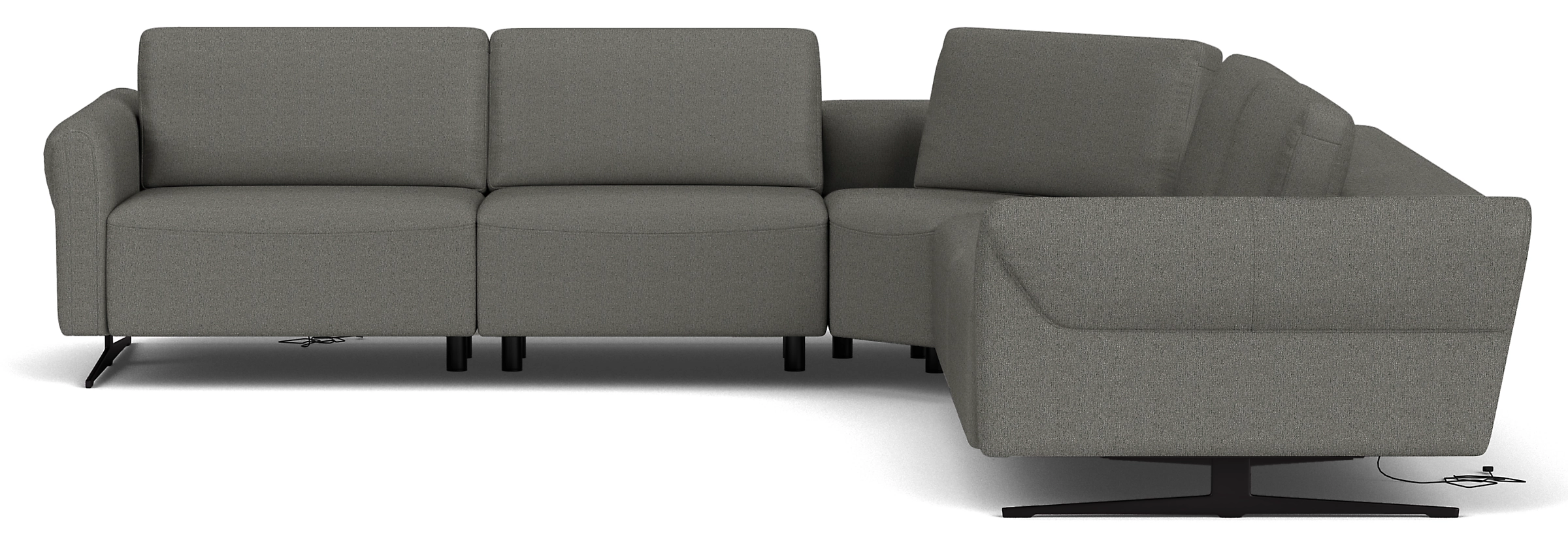 - Features: Left to right: Left-arm chair with powered footrest & manual headrest, armless chair with manual headrest, corner piece with manual headrest, right-arm chair with powered footrest & manual headrest