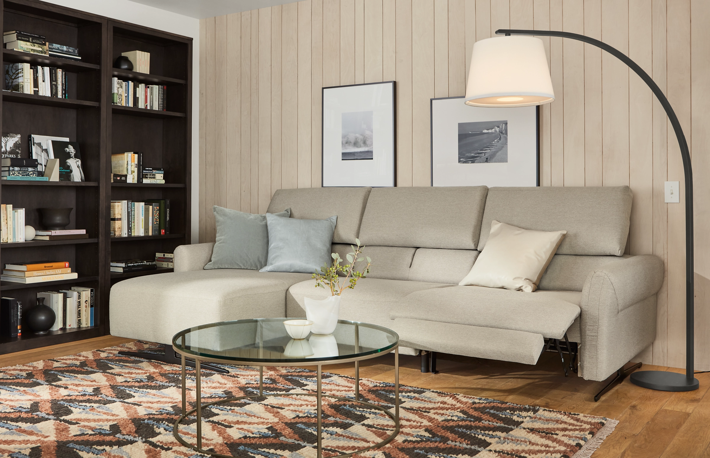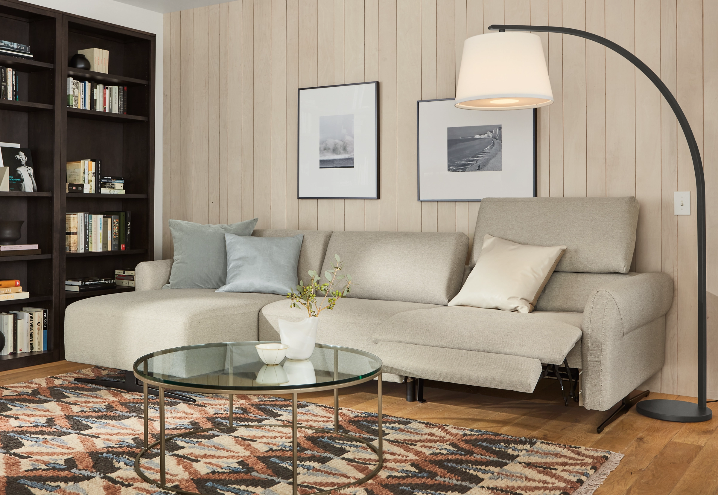 Expertly made in Italy, our Vesna power-reclining sectional features adjustable comfort. Simply touch the buttons on the arms to extend the footrest or push the headrest up to lock it in place for a luxurious lounging experience. Soft cushions and a tight-back design give Vesna exceptional comfort within a sleek European silhouette.
