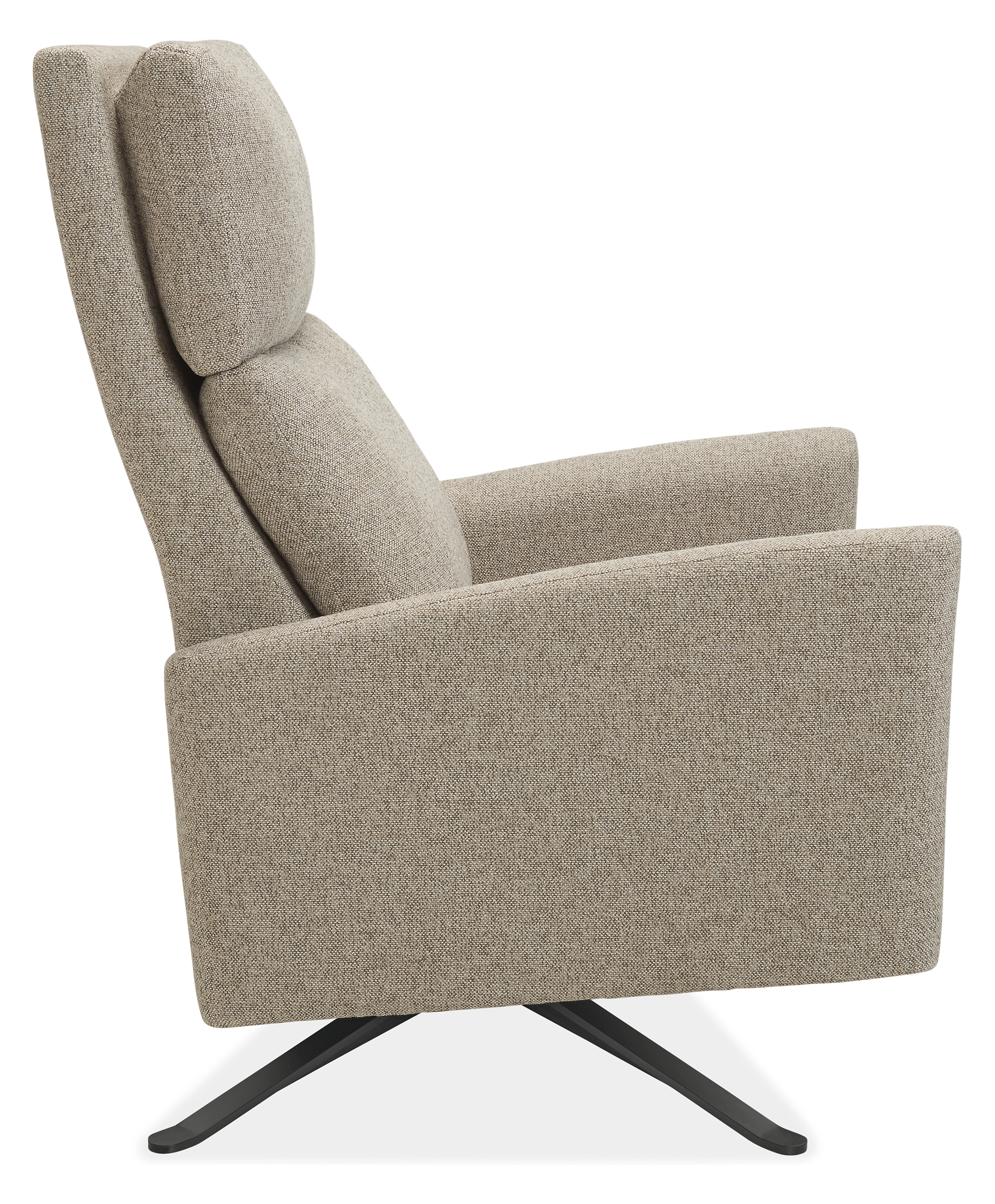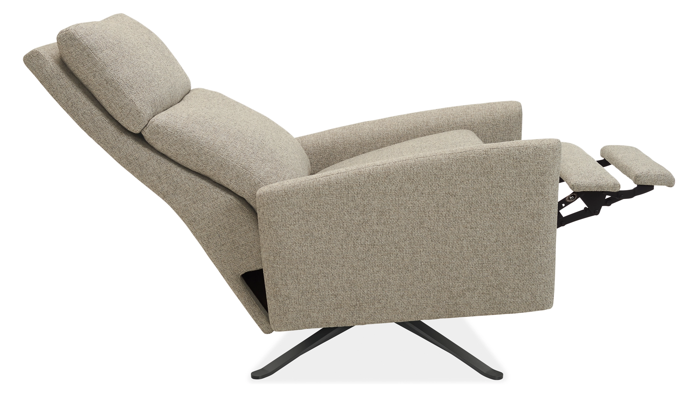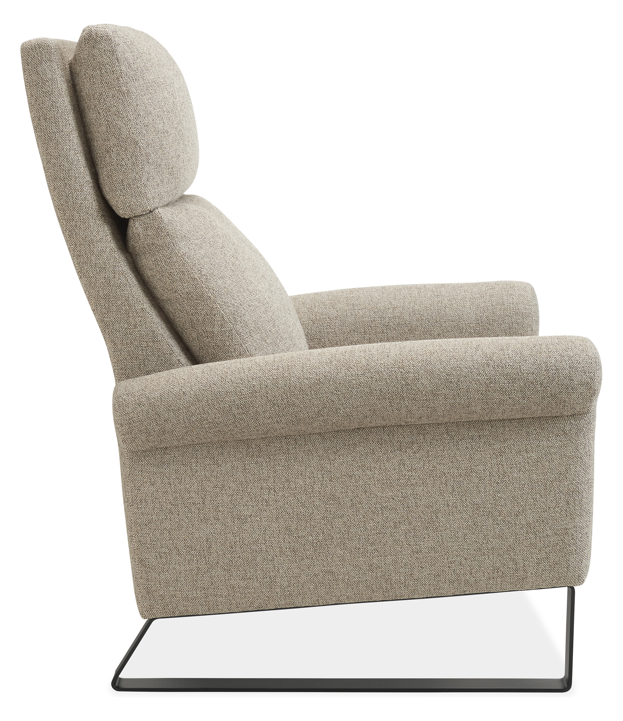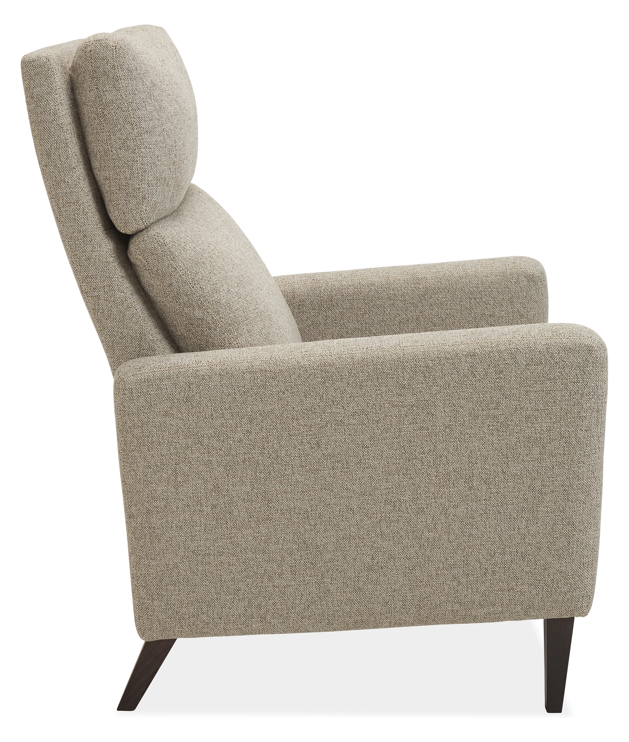 Our Wynton recliner has a soft sink-in seat and a semi-attached back and head pillow that encourage lounging. Its clean silhouette and tall legs give it a light presence, offering you all the comfort of a recliner in a sleek look. Push back on the chair to smoothly recline and extend the footrest.